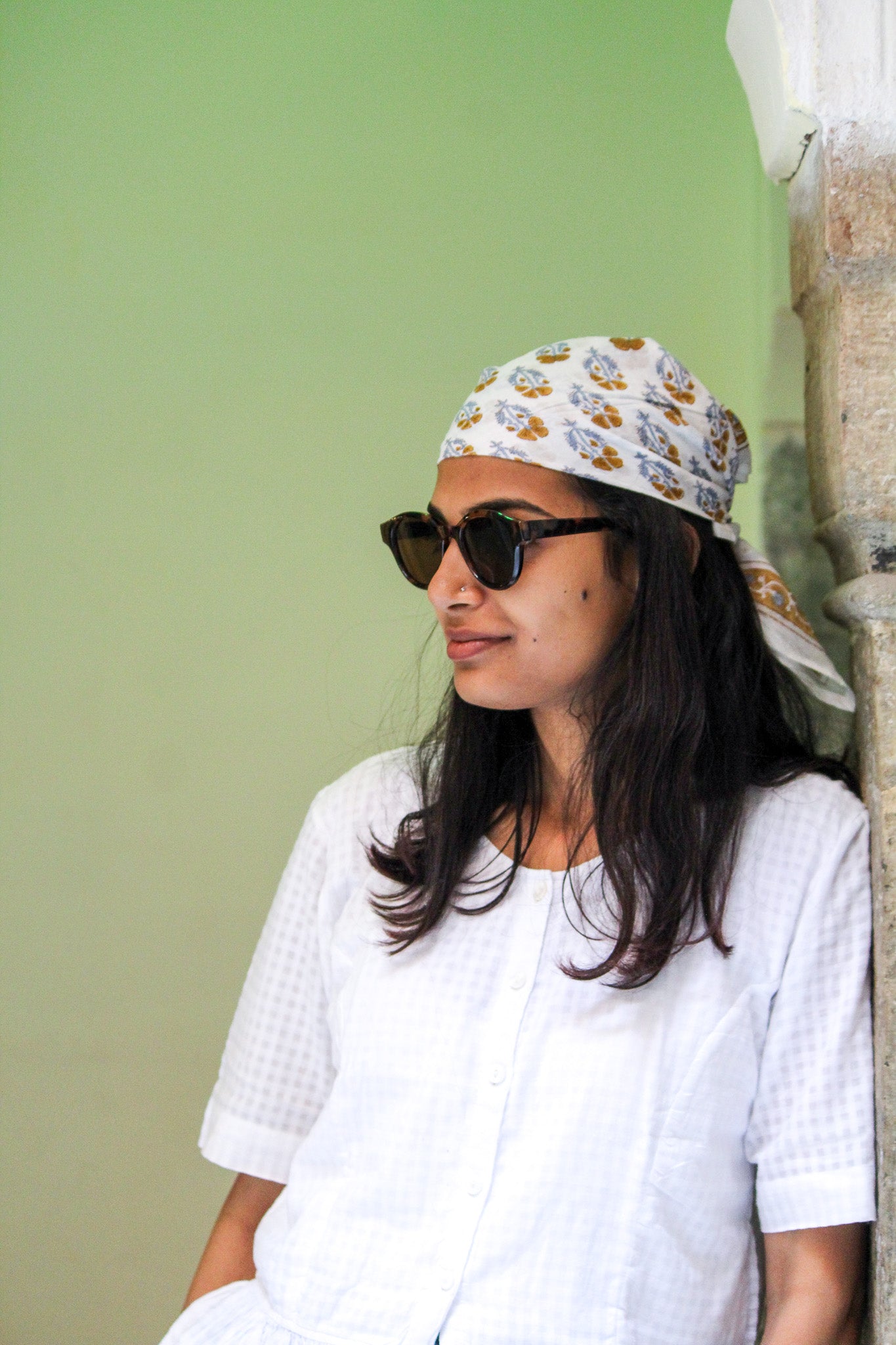 Apportez une touche d’élégance artisanale à votre style avec ce foulard carré en voile de coton, imprimé à la main selon la technique ancestrale du block print à Jaipur, en Inde. Léger, doux et polyvalent, il se porte aussi bien en bandana, tour de cou, dans les cheveux ou attaché à un sac.
