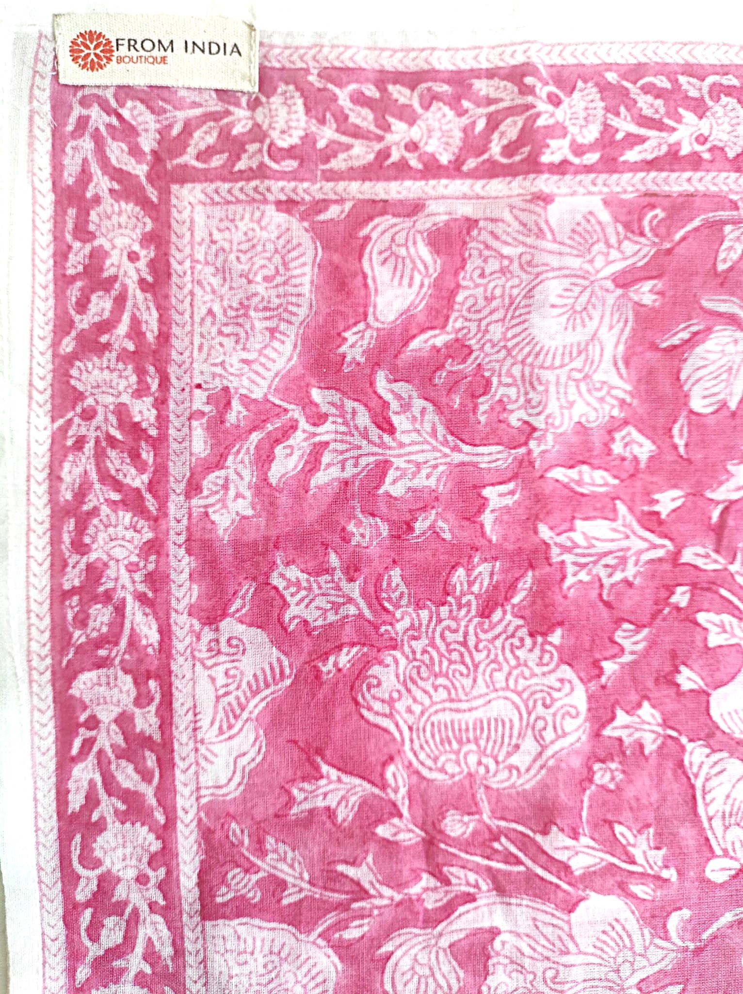 Apportez une touche d'élégance artisanale à votre style avec ce foulard carré en voile de coton , imprimé à la main selon la technique ancestrale du block print à Jaipur, en Inde. Léger, doux et polyvalent, il se porte aussi bien en bandana, tour de cou, dans les cheveux ou attaché à un sac .