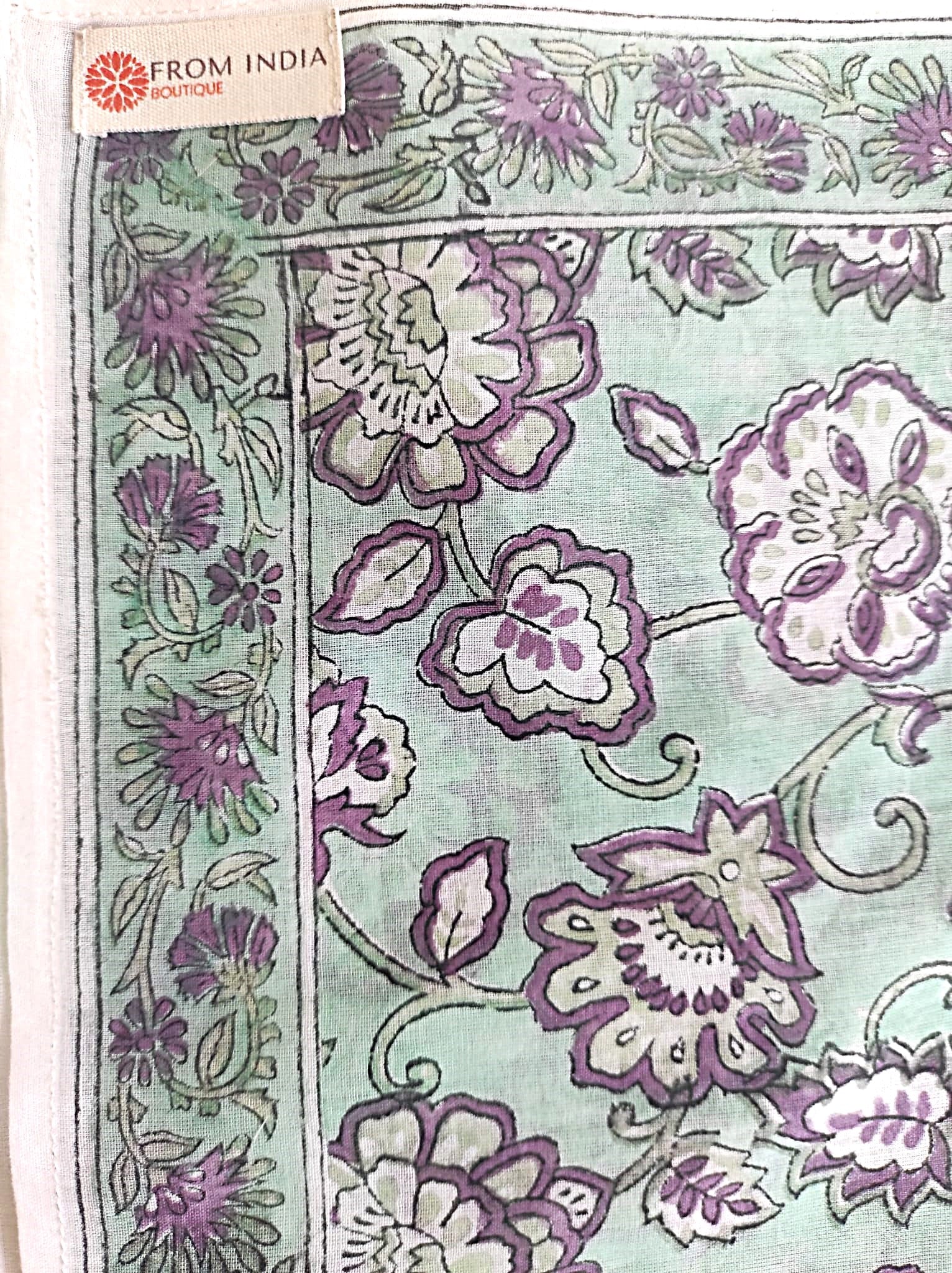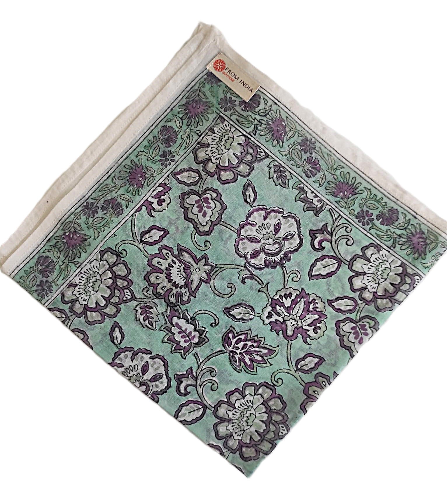 Carré foulard bandana en voile de coton – Block print Jaipur (50x50 cm) - MYSORE