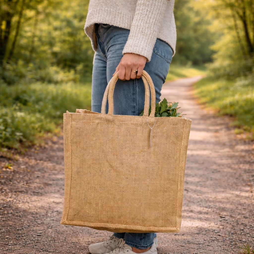 Fabriqué en jute 100 % naturel, ce sac est biodégradable, durable et respectueux de l’environnement. Un excellent choix pour remplacer les sacs jetables ou synthétiques.